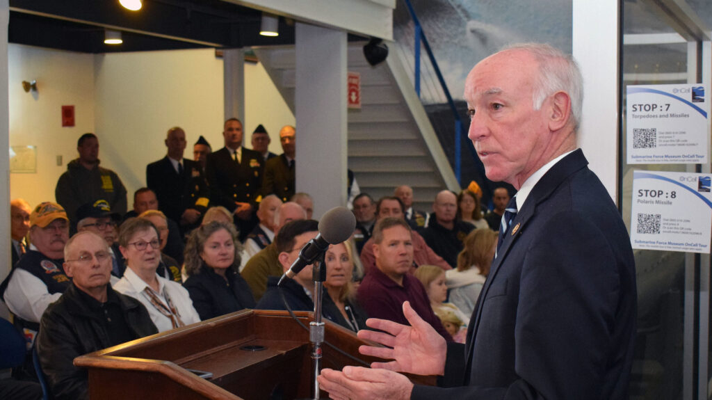 U.S. Congressman Joe Courtney (CT-2) speaks at the Tolling of the Boats ceremony held at the United States Submarine Force Library and Museum. (U.S. Navy/Tristan B. Lotz/Released)