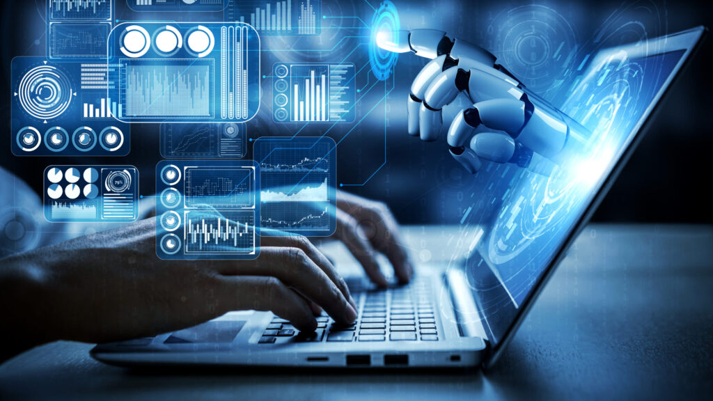 Artificial intelligence AI research of robot and cyborg development for future of people living. Digital data mining and machine learning technology design for computer brain communication. (Getty images)