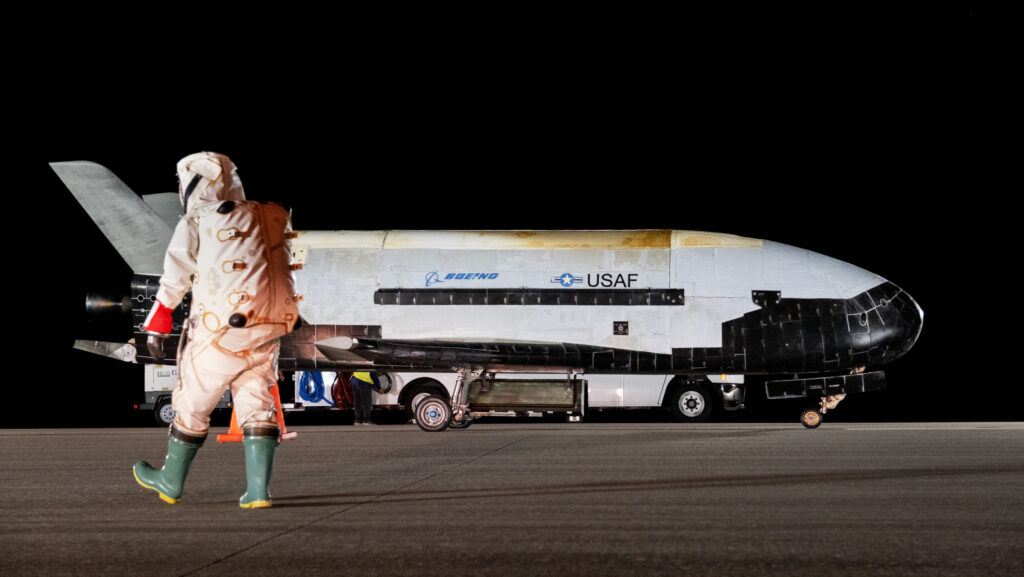 X-37B orbital test vehicle concludes sixth successful mission, November 2022. (Space Force photo by Staff Sgt. Adam Shan)